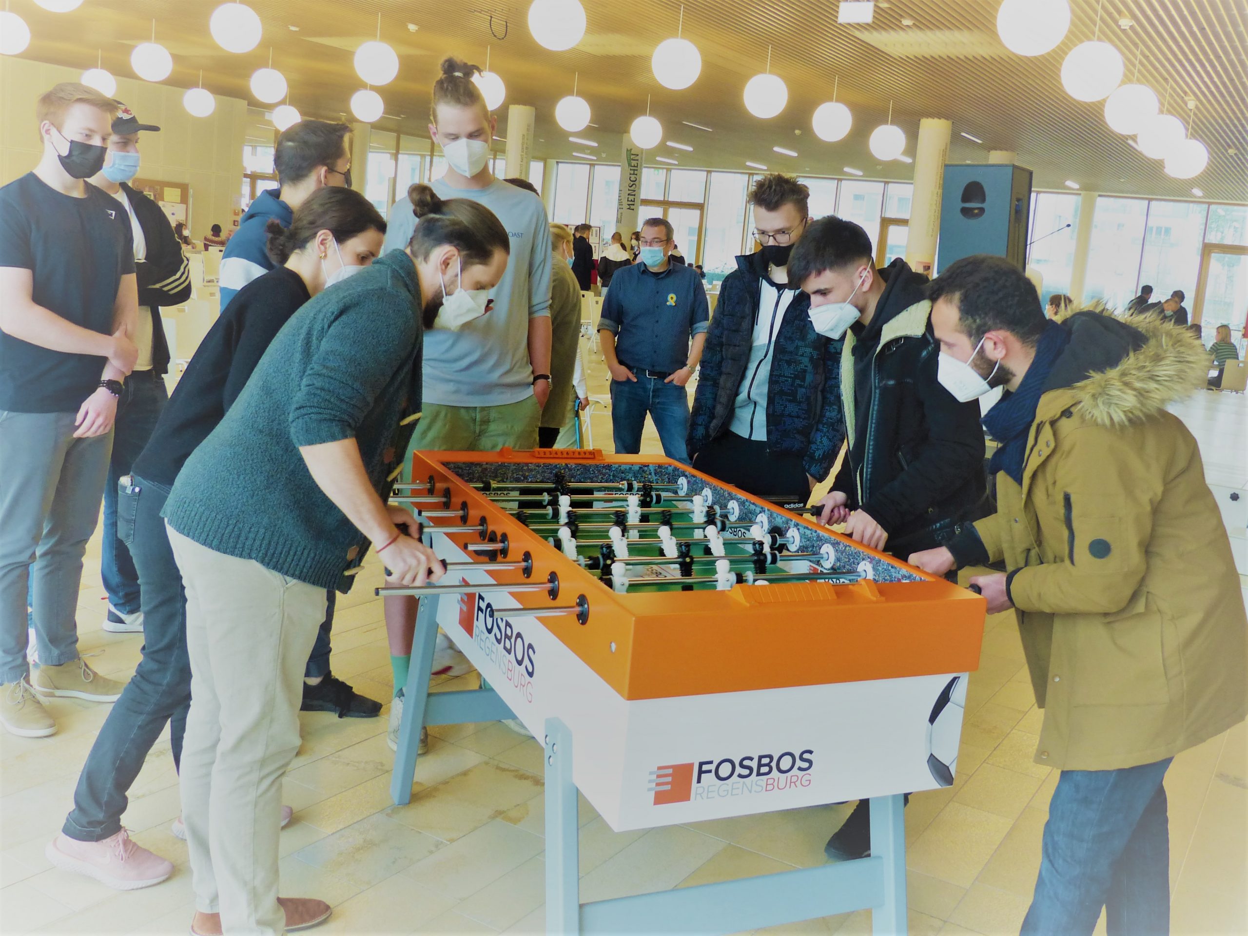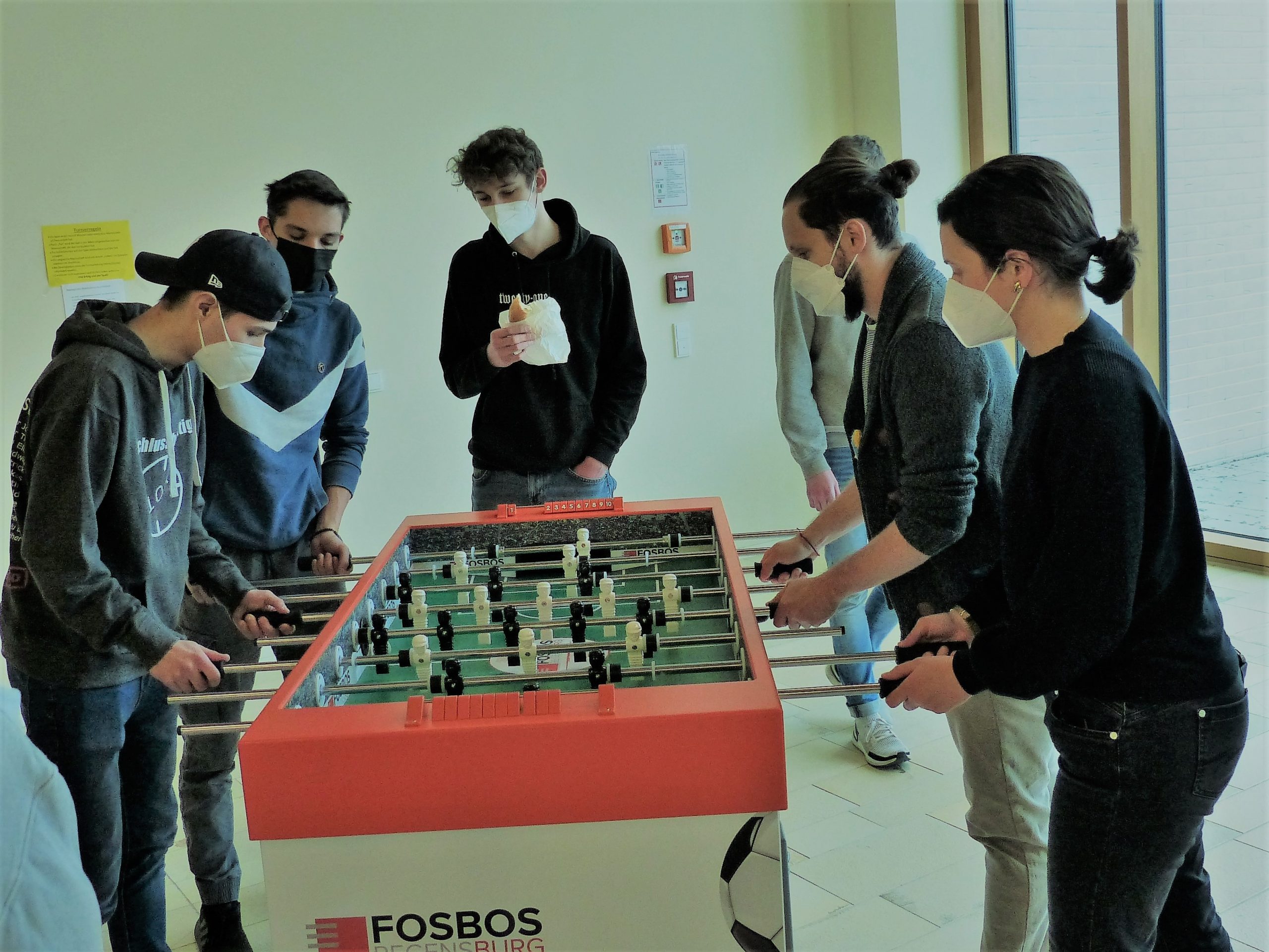 Die SMV hat tief in die Taschen gegriffen um den Schülerinnen und Schülern mit einem neuen Profikicker die Zeit an der Schule zu bereichern. Gefertigt von der Werkstatt für Behinderte der Barmherzigen Brüder Gremsdorf erstrahlt der Turnierkicker im Design des FOSBOS Schullogos.